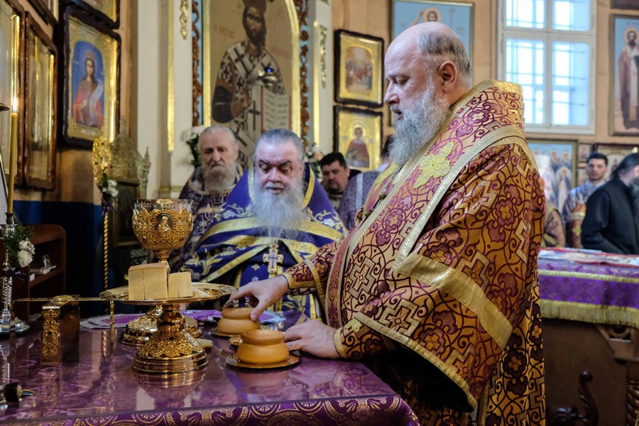 Его Высокопреосвященству сослужили наместник монастыря архимандрит Серафим (Петручик), клирики монастыря протоиерей Анатолий Немшон, протоиерей Анатолий Пучинский, иерей Димитрий Элькснин и иеромонах Евфимий (Павлович).