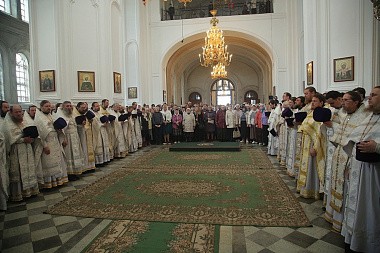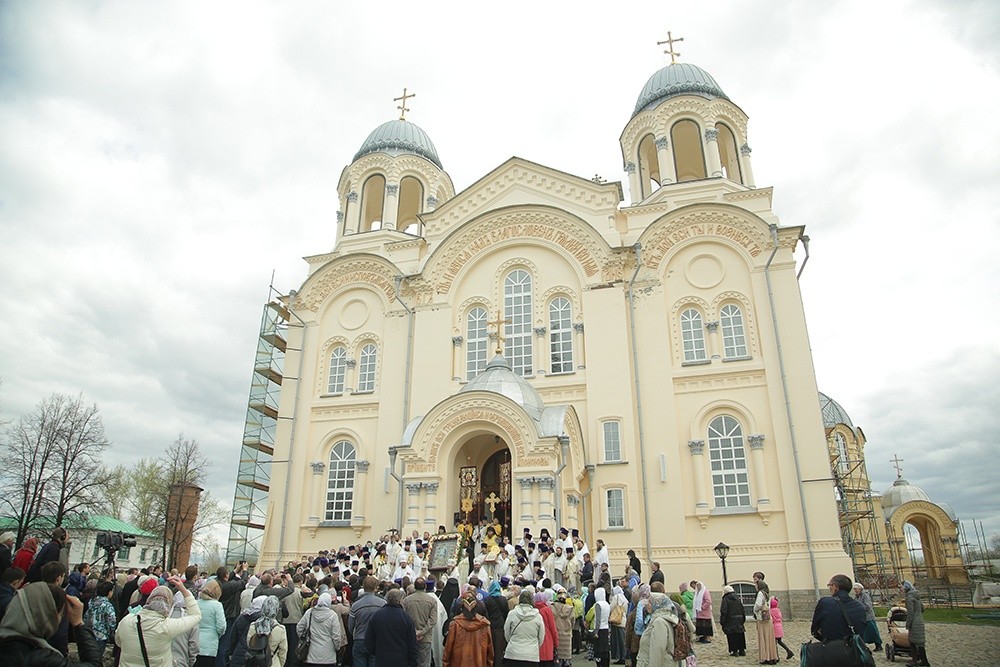 По окончании богослужения состоялся крестный ход вокруг собора. Митрополит Кирилл обратился к присутствующим с архипастырским словом, отметив, что, несмотря на непрекращающиеся работы по обновлению обители, молитвами праведного Симеона здесь всегда ощущаются благодать Божия и радость.