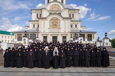 От лица насельниц и паломников Серафимо-Дивеевского монастыря Святейшего Владыку также приветствовала игумения Сергия (Конкова). Настоятельница обители преподнесла Его Святейшеству икону Благовещения Пресвятой Богородицы, просфору и монашеские четки.