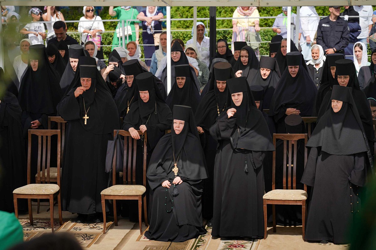 За Литургией молились: заместитель председателя Синодального отдела по взаимоотношениям Церкви с обществом и СМИ И.В. Мещан; заместитель председателя Синодального отдела по монастырям и монашеству, настоятельница Зачатьевского ставропигиального женского монастыря г. Москвы игумения Иулиания (Каледа); настоятельница Серафимо-Дивеевского монастыря игумения Сергия (Конкова); настоятельницы ряда женских монастырей Русской Православной Церкви; сестры Дивеевской обители; многочисленные паломники.