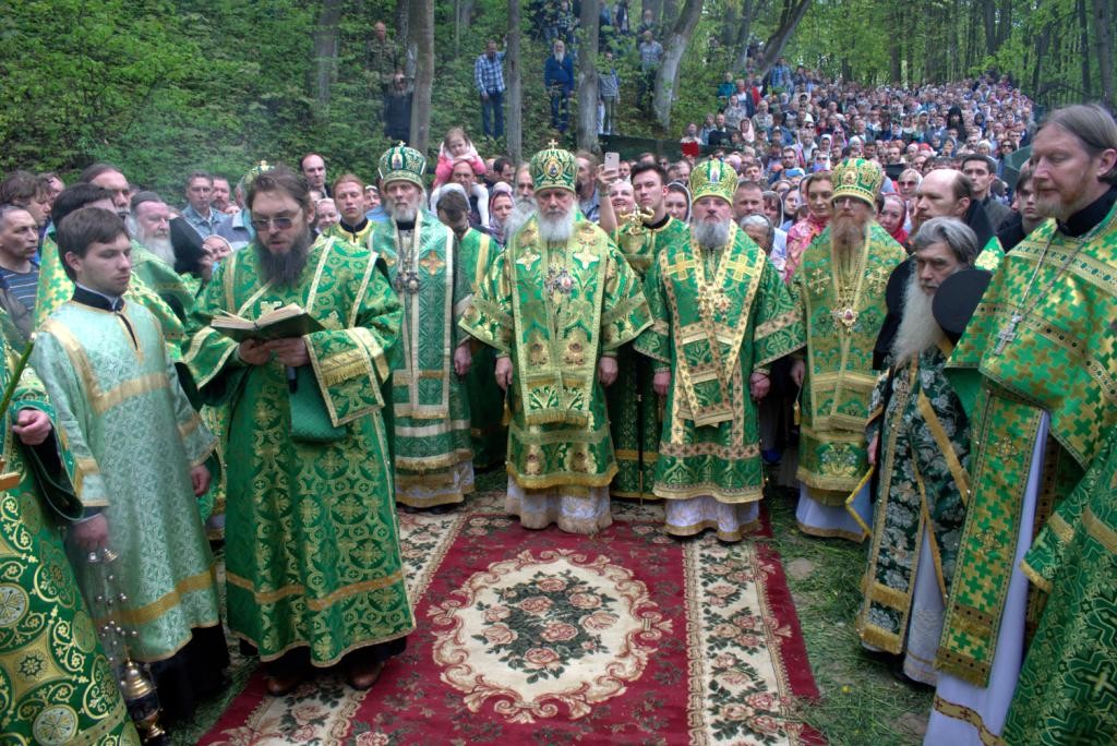 По окончании Литургии вокруг обители был совершен праздничный крестный ход до монастырского источника, где было совершено малое освящения воды.