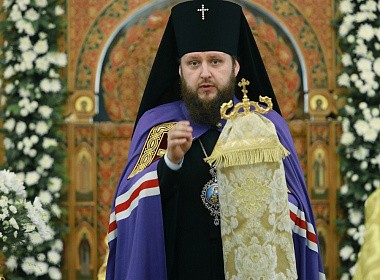 По окончании Литургии было совершено «молебное пение в праздник святого равноапостольного князя Владимира – воспоминания Крещения Руси» и крестный ход, по окончании которого владыка Аксий прочел молитвы святому равноапостольному князю Владимиру и преподобному Владимиру Белопесоцкому, а духовенство пропело величания святым.