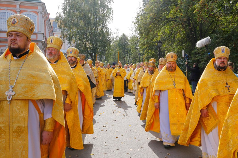 По окончании богослужения началось молитвенное шествие по Невскому проспекту от Казанского собора к площади Александра Невского.