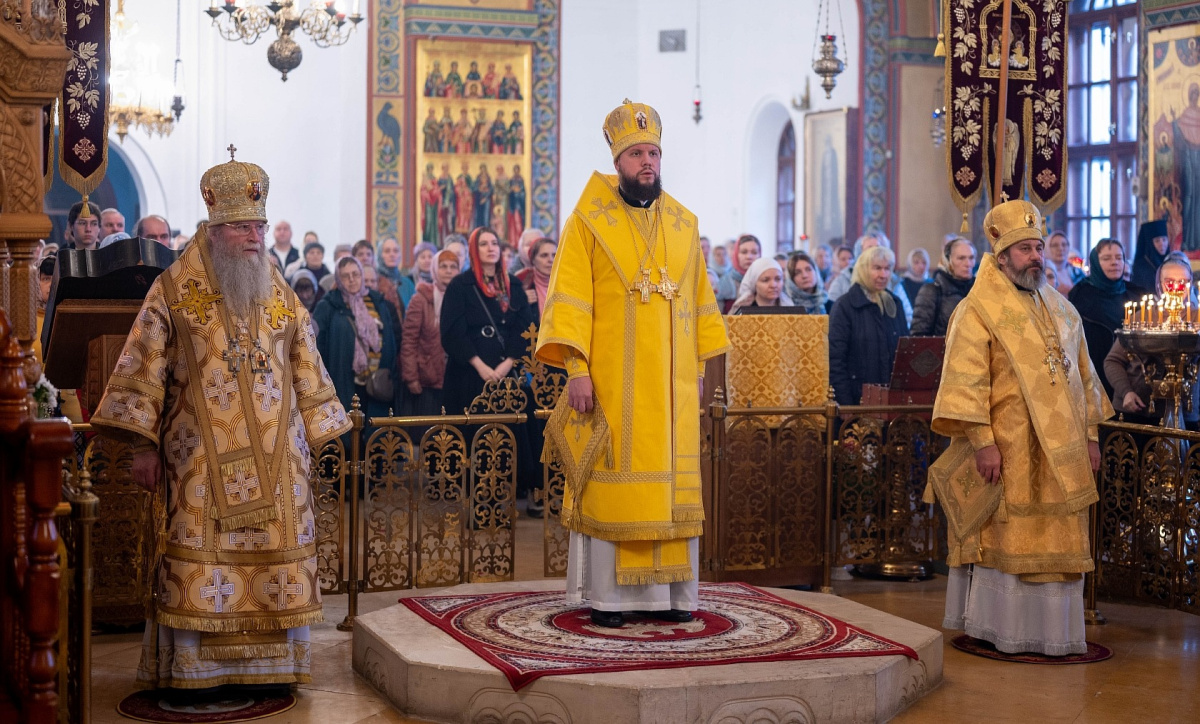 Его Высокопреосвященству сослужили: епископ Муромский и Вязниковский Нил, епископ Александровский и Юрьев-Польский Стефан, наместник Богородице-Рождественского мужского монастыря игумен Кирилл (Сурков), благочинный Западного округа Владимира протоиерей Евгений Липатов, благочинный Восточного округа Владимира иерей Николай Тихомиров, благочинный Камешковского района иерей Георгий Фридман, благочинный Собинского района протоиерей Виктор Тарасов, личный секретарь митрополита иеромонах Макарий (Варежкин) и духовенство Владимирской епархии.