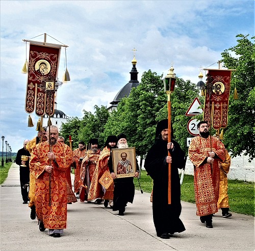 По окончании богослужения духовенство и прихожане Успенского монастыря прошли крестным ходом от обители до руин приходской Никольской церкви. На месте утраченного храма было совершено молебное пение.