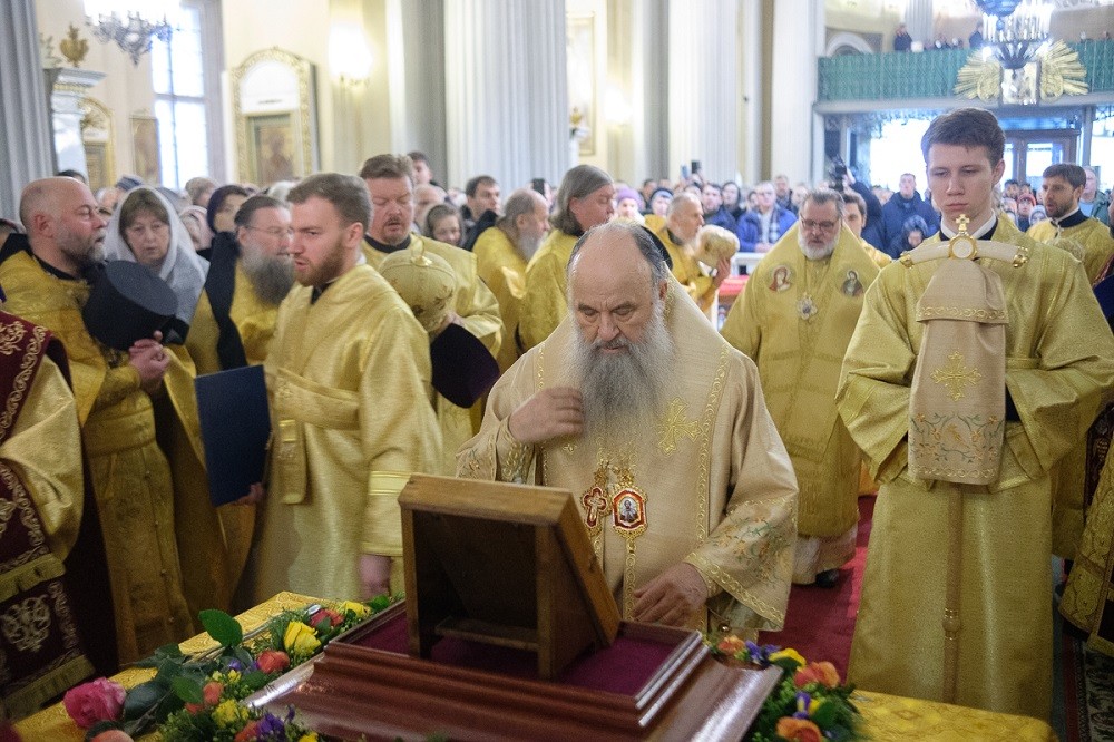 Мощи святого Александра Невского были вынесены в центр собора. Перед ними было совершено славление.