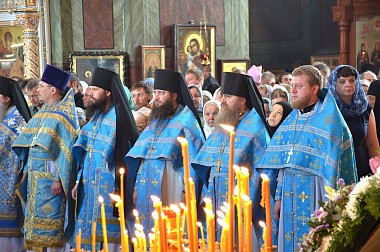 По случаю престольного праздника глава Липецкой митрополии возглавил совершение праздничного молебна Пресвятой Богородице с крестным ходом вокруг собора.