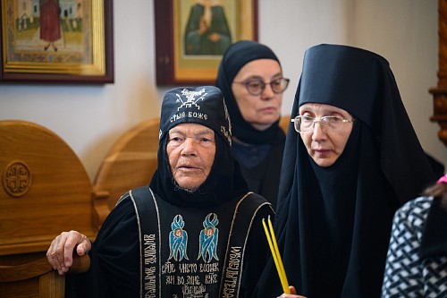 По окончании богослужения был совершен крестный ход с чтимым в обители списком иконы Пресвятой Богородицы «Всех скорбящих Радость» вокруг храмов обители. Во время крестного хода за алтарем Троицкого храма была совершена заупокойная лития по почившим настоятельницам монастыря.