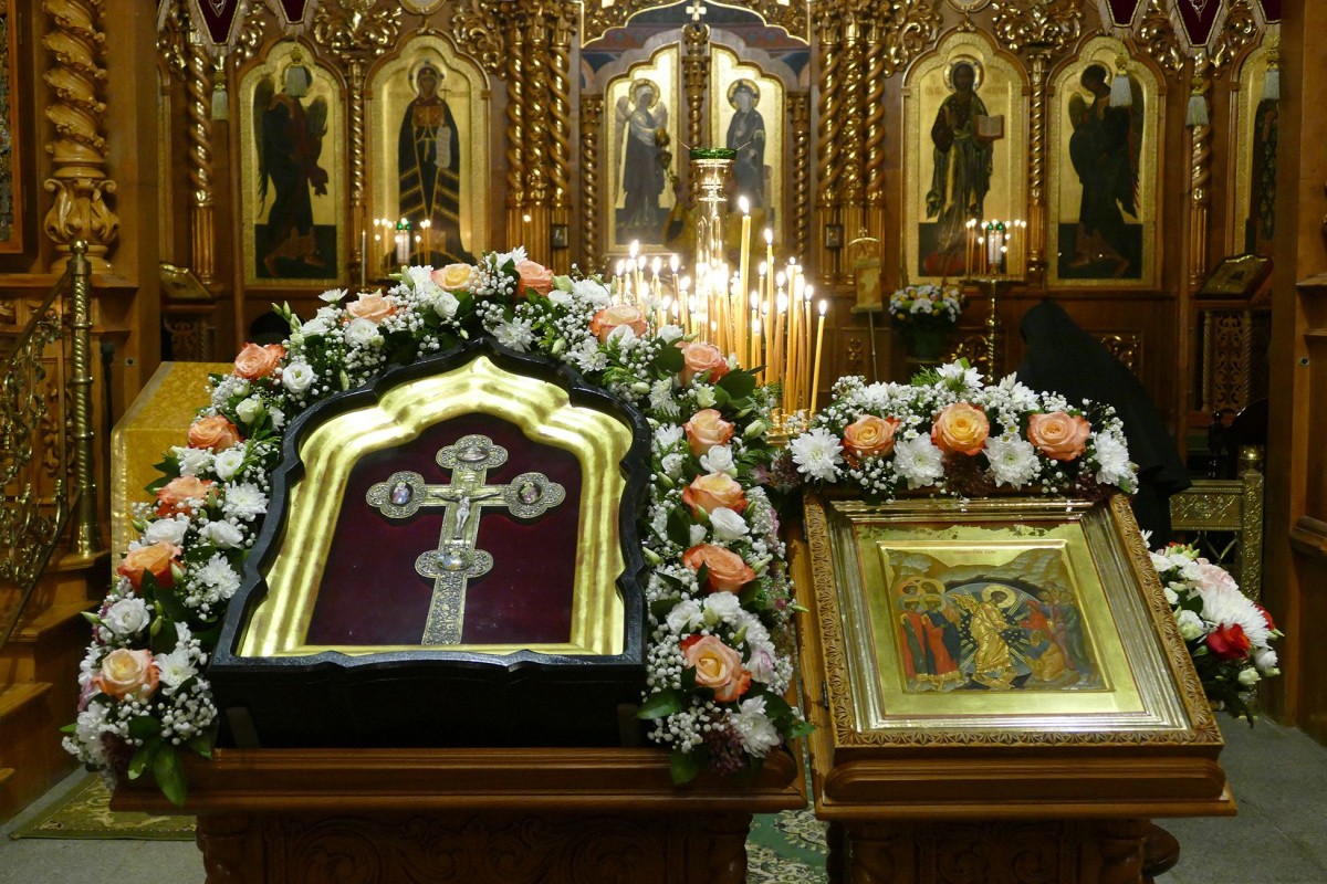 В святыню вложены часть ризы Господней, часть ризы Пресвятой Богородицы, частицы древа Животворящего Креста Господня и камня Гроба Господня, а также 69 частиц мощей угодников Божиих.