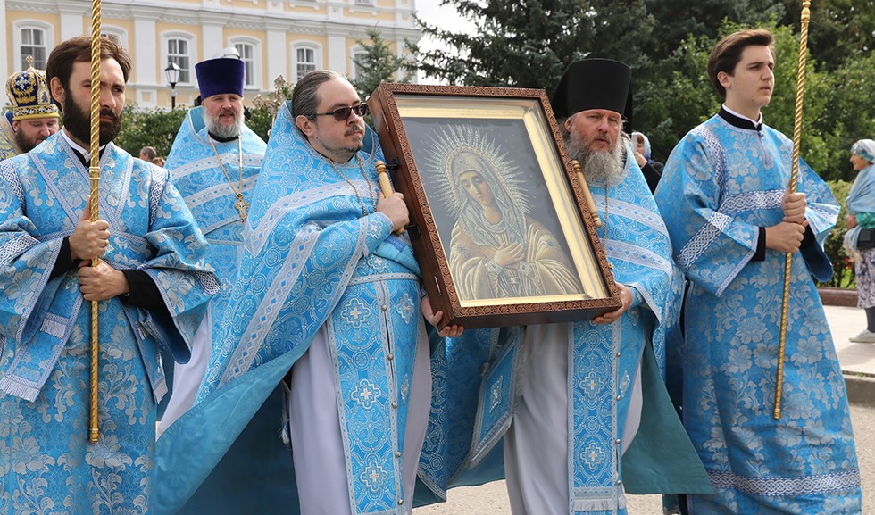 По традиции в этот праздничный день состоялся крестный ход по святой Канавке, возглавляемый иконой Божией Матери «Умиление» старинного письма.