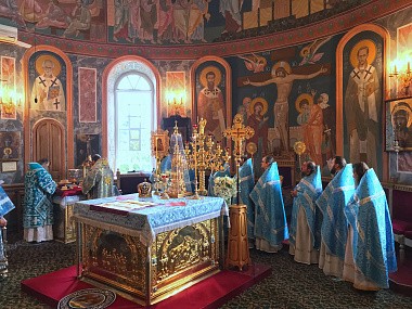 Ночью в приделе в честь иконы «Умиление» Троицкого собора обители были совершены параклис с молебном с водосвятием и Божественная литургия. Данное богослужение совершается только для насельниц обители, которые пришли в храм помолиться своей Небесной Игумении.