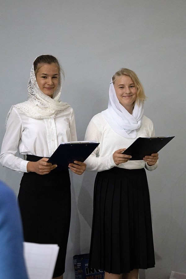 День знаний в дивеевской монастырской православной школе начался традиционной торжественной линейкой, посвященной началу учебного года. Из-за дождя праздничные мероприятия прошли в этом году не у монастырской школы, как это бывает обычно, а внутри здания.