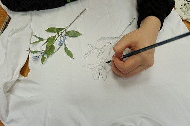 «В воскресенье в нашей школе проходил мастер-класс по дизайну одежды. Мы украшали обычные водолазки художественной росписью, рисовали на них цветы, которые выглядели, как настоящие. Это техника рисования сухой кистью на ткани специальными красками.