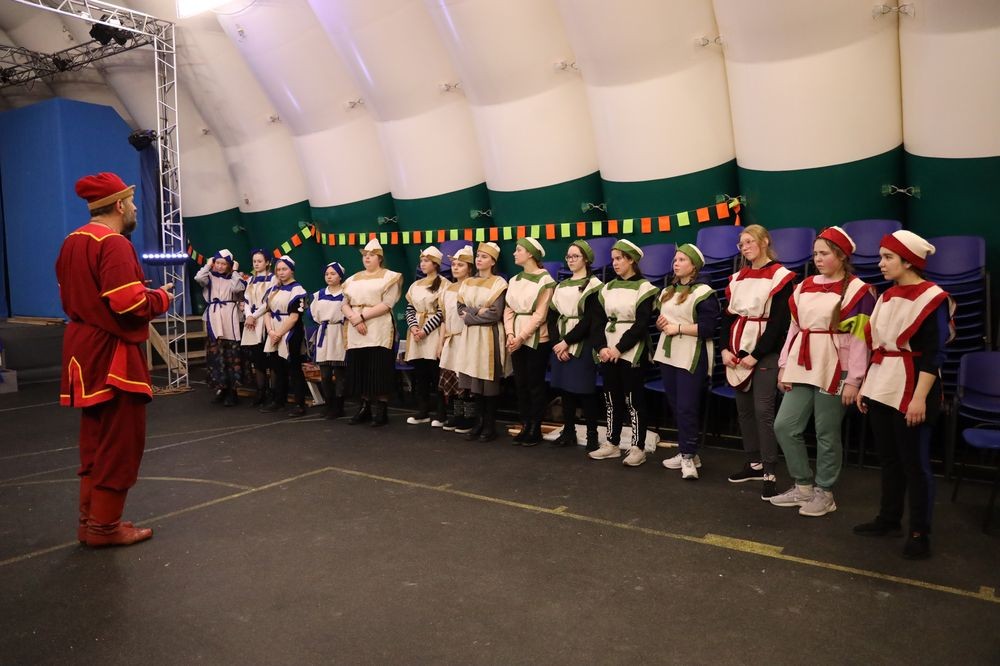 В феврале к нам приехала Тульская Богатырская Дружина, которая организовала древнерусские богатырские игры для студенток колледжа и старшеклассниц школы.