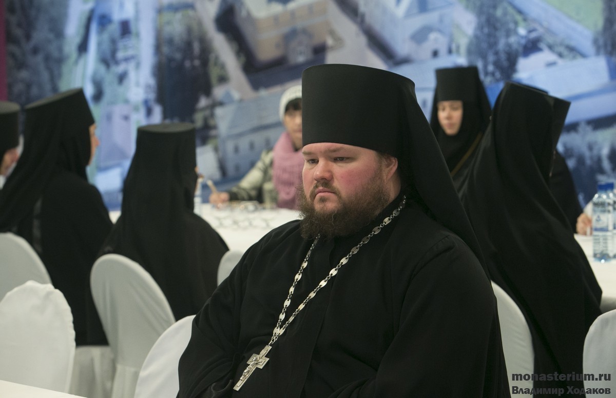 Игумен Николо-Берлюковской пустыни с. Авдотьино Евмений (Лагутин) подготовил доклад на тему «Древние монашеские традиции в современных условиях», в котором после исторического экскурса во времена развития древнего монашества и описания двух подходов к монашеской жизни в России XV–XVI веков – преподобного Иосифа Волоцкого и преподобного Нила Сорского – перешел к рассказу о Николо-Берлюковской пустыни, где сто лет назад подвизалось 54 насельника (сегодня в монастыре только четыре насельника). Многое уже сделано братией для восстановления обители и еще больше предстоит сделать, но главным, по словам игумена, остается необходимость избежать опасности, когда за внешней деятельностью теряется тот духовный настрой, с которым человек приходит в монастырь.