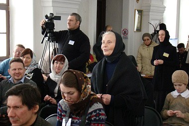 В качестве заключительной темы обсуждалась роль Феодоровского монастыря и других обителей в формировании социокультурного пространства города. Сейчас в маленьком городке Переславле-Залесском, где численность населения менее сорока тысяч человек, действует четыре монастыря. Самому молодому из них – Свято-Троицкому Данилову мужскому монастырю – в прошлом году исполнилось 510 лет. Руководитель Отдела охраны объектов культурного наследия Переславской епархии Ю.Ю. Епишкина рассказала о значении Феодоровской обители в формировании архитектурного ансамбля города, важности воссоздания монастырских и храмовых ансамблей, а также о том, что важно воссоздавать не только стены, но и возвращать зданиям их главное предназначение – богослужебную деятельность. Она отметила, что одно из главных влияний монастыря на формирование культурного и духовного облика Переславля-Залесского – это его архитектурный ансамбль, который, к сожалению, частично утрачен. Его основная вертикальная доминанта – колокольня конца XVII века – была разобрана в 30-х годах XX века. По словам Юлии Юрьевны, одной из интересных сторон существования городских монастырей в социально-культурной среде русского города является влияние городских монастырей на формирование визуальной среды и городского ландшафта. Епархиальный специалист сообщила, что с самого своего основания Феодоровский монастырь является не только духовным центром, но и градообразующим элементом городской среды, центром, формирующим вокруг себя ландшафтную архитектуру и оказывающим значительное влияние на культурную и хозяйственную жизнь города.