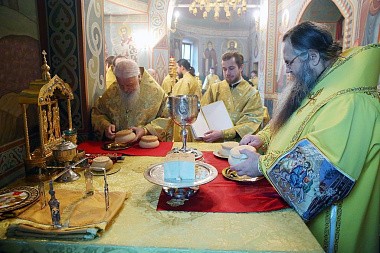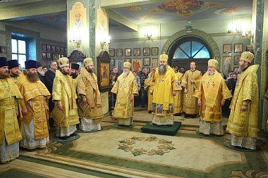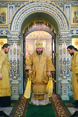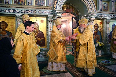 Его Высокопреосвященству сослужили епископ Городецкий и Ветлужский Августин, викарии Нижегородской епархии епископ Балахнинский Илия и епископ Дальнеконстантиновский Филарет, епископ Выксунский и Павловский Варнава, епископ Лысковский и Лукояновский Силуан, секретарь Архиерейского совета Нижегородской митрополии протоиерей Сергий Матвеев, клирики Нижегородской и Городецкой епархий.