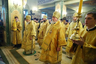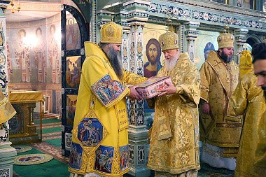 Управляющий Городецкой епархией преподнес в дар митрополиту Георгию шкатулку с городецкой росписью, а каждому участвовавшему в богослужении архиерею – сувенирный городецкий пряник.
