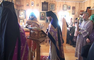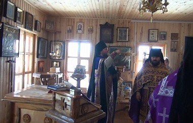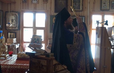 Чин малого освящения храма и Божественную литургию совершил настоятель обители игумен Иов (Чернышев) в сослужении благочинного Кадуйского района иеромонаха Агафангела (Бреднева) и эконома обители иеромонаха Геронтия (Чудневича).