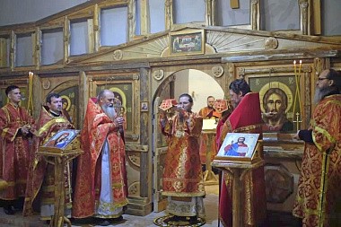 Накануне вечером епископ Игнатий возглавил всенощное бдение в сослужении настоятеля монастыря игумена Иова (Чернышева) с братией обители в священном сане.
