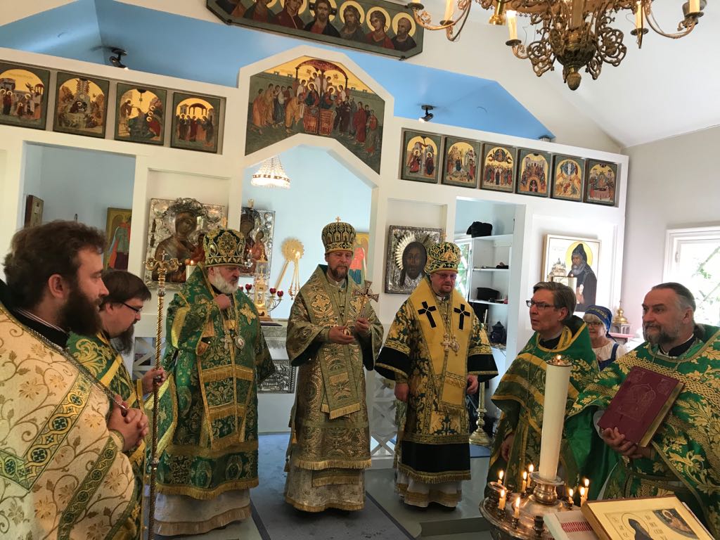 13 июня епископ Йоэнсууский Арсений, епископ Выборгский и Приозерский Игнатий и епископ Кронштадтский Назарий совершили Литургию в Ново-Валаамском монастыре.