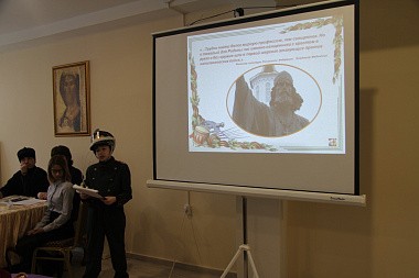 Доклады секции для старших школьников выглядели не менее представительными и не менее творческими. Например, чтобы рассказать о синтезе храмовых искусств на примере Никольского собора Свято-Никольского Черноостровского женского монастыря ученицы 11 класса Православной гимназии при монастыре Наталья Выродова и Алена Прощелыкина не только показали красочную презентацию и видеофрагменты из богослужений, но также исполнили совместно с другими воспитанницами приюта «Отрада» молитву «Богородице Дево, радуйся» византийским распевом. Ученица 9 класса Ерденевской школы Виталия Маякова доказала слушателям секции важность вклада патриотически и традиционно настроенного купечества в укрепление своей Отчизны, проиллюстрировав свои рассуждения примерами из истории купеческих родов Малоярославца, в особенности рода Целебеевых, особенно много сделавших для строительства храмов в городе и восстановления в ΧΙΧ веке Свято-Никольского Черноостровского монастыря. Доклад ученика 8 класса Неделинской средней школы Романа Алешенко также в какой-то мере иллюстрировал вывод предыдущего доклада на примере вклада представителей компании «Газпром» в восстановление храма Недельного, ставшего культурным и духовным центром для возрождения села. Ученица 10 класса Малоярославецкой гимназии Сабрина Куиси рассказала о творчестве и биографии земляка малоярославчан и певца Малоярославецкой земли поэта Валентина Ермакова. Ученица 8 класса Малоярославецкой МБОУ СОШ № 2 Екатерина Михайловская представила результаты своего социологического исследования среди учеников своей школы об информированности школьников о казачестве, его истории и культуре, объяснив интерес к теме историей своей семьи. Ученик 10 класса Малоярославецкой МБОУ СОШ № 4 Никита Лызлов представил подробный отчет своих изысканий, связанных со святой преподобномученицей Елисаветой, связанных с его стремлением понять из ее биографии, как она из немецкой принцессы, родившейся в протестантской семье, стала великой православной святой. Последняя из выступавших на секции ученица 8 класса Детчинской школы Валерия Япрынцева рассказала о своем интересе к творчеству земляка-калужанина, ученика Ильи Глазунова Павла Рыженко, посвятив свой доклад его светлой памяти и объяснив слушателям философию художника, призывавшего в своем творчестве к возрождению «гена русского богатыря» в современном человеке.