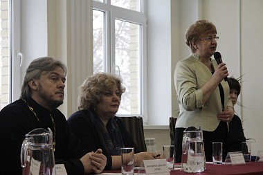 Выступление Ксении Васяевой, ученицы 10 класса Православной гимназии при Свято-Никольском Черноостровском женском монастыре, продолжило пленарное заседание. В своем докладе «Разработка квеста для интерактивного музея "Победоносное сражение под Малоярославцем в Отечественной войне 1812 года"» Ксения рассказала о том, как дети приюта «Отрада» вместе с сестрами монастыря в сотрудничестве со специалистами по музейной педагогике разрабатывают сценарий и задания для квестов интерактивного музея, создающегося при Свято-Никольском Черноостровском женском монастыре при поддержке гранта Президентского фонда.