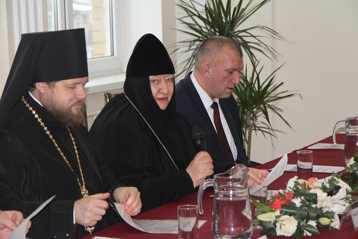 С приветственным словом выступила Г.М. Донченкова, председатель Общественной палаты Калужской области, от имени всей Общественной палаты пожелавшая форуму успешной работы. Приветственное слово главы Администрации Малоярославецкого района А.В. Иванова зачитала его заместитель по социальным вопросам Н.В. Богомолова, подчеркнувшая большую значимость форума для Малоярославецкого района, развития взаимодействия в рамках педагогического и культурного сообщества в регионе, налаживания связей между различными муниципальными и общественными организациями с церковными структурами. Глава города Малоярославца Р.С. Саидов приветствовал участников форума, заверив в поддержке его инициатив со стороны городских властей и поблагодарив монастырь за организацию форума.