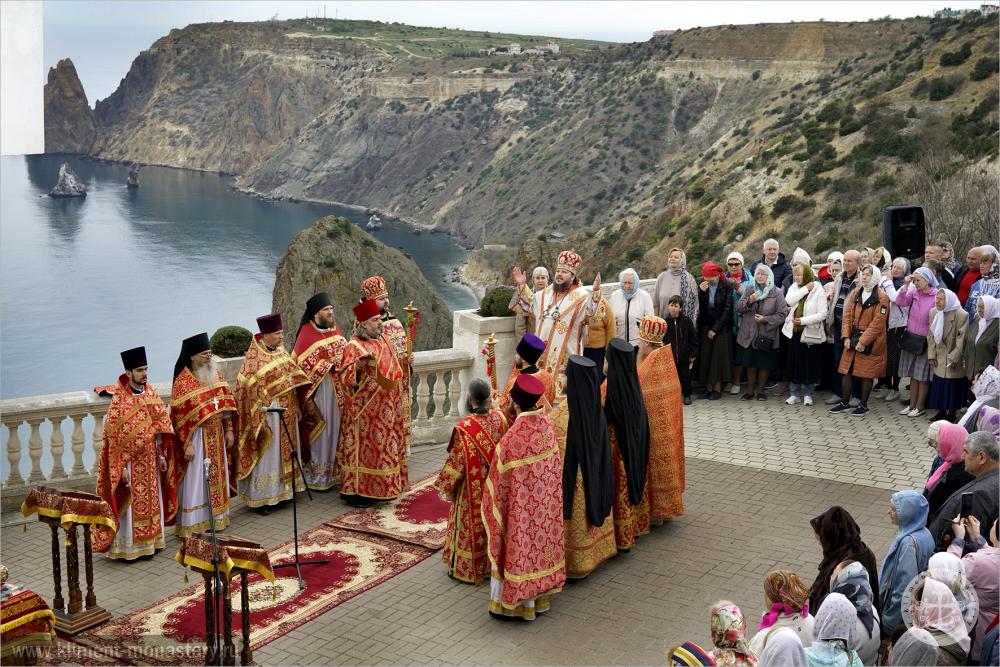6 мая 2023 года, в субботу 3-й седмицы по Пасхе, в Свято-Георгиевском мужском монастыре на мысе Фиолент в Крыму прошли престольные торжества в честь небесного покровителя обители святого великомученика и победоносца Георгия.