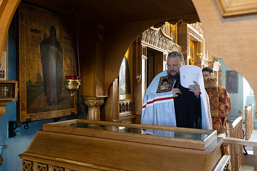 По окончании Литургии духовенство и прихожане прошли крестным ходом вокруг храма. Затем были пропеты пасхальные стихиры. У раки с мощами преподобного Иакова Железноборовского совершено славление и прочитана молитва святому.