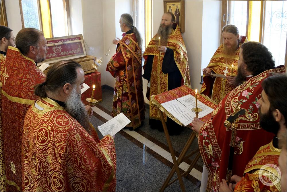 В этот день Божественную литургию возглавил наместник Инкерманской обители, благочинный монастырей Крыма архимандрит Каллиник (Чернышев) в сослужении духовенства из братии и гостей.