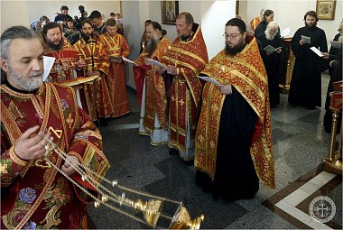 По окончании Литургии было совершено молебное пение с акафистом святому Клименту, традиционно совершаемое всеми богомольцами нараспев.