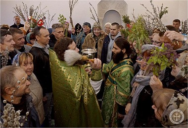 В завершение были освящены ветви вербы у прихожан и паломников, пришедших на праздничное богослужение.