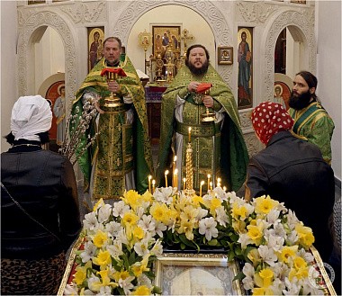 В этот день праздничную Божественную литургию в Свято-Троицком храме монастыря совершил наместник Инкерманской обители, благочинный монастырей Крыма архимандрит Каллиник (Чернышев) в сослужении благочинного Климентовского монастыря иеромонаха Авеля (Василенко) и насельника обители иеромонаха Илариона (Чистякова).