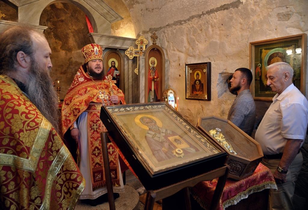 Литийное шествие стало особенным - частицей святых мощей Первоапостола Тавриды Андрея Первозванного благословил Господь древнюю обитель в этом году. Как два храма, высеченные рядом в Монастырской скале, – Святителя Мартина и Апостола Андрея, – две части их цельбоносных и чудотворных мощей в иконе и ковчеге обтекли крестным ходом весь монастырь. Ковчег же с частицей мощей святого Первозванного апостола Андрея отныне будет находиться на центральном аналое Андреевской скальной церкви I века – самого древнего действующего пещерного храма на всей канонической территории Русской Церкви.