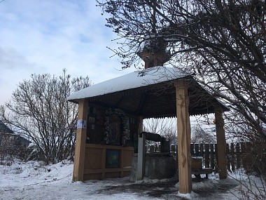 Вместо деревянной сени над колодцем по проекту должна появиться более просторная металлическая конструкция с элементами ковки. Верхняя часть – крыша – по эскизу имеет изгиб по подобию часовен русского Севера. Иконы, которые были дороги отцу Авелю и уже стали дороги жителям села, будут перенесены в новую сень.