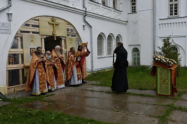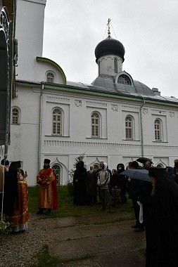 Утром в Успенском храме обители был отслужен молебен с водосвятием.