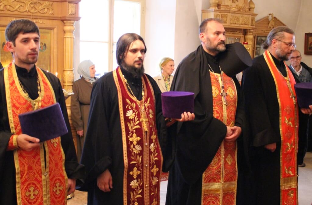 Архипастырям сослужило духовенство Вяземской епархии.
