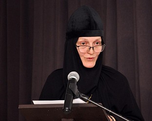 Большой интерес вызвали выступления насельниц Иверского женского монастыря – инокини Феодосии и монахини Самуилы. Инокиня Феодосия представила размышления на тему соотношения Небесного и земного Отечества. Несмотря на то, что каждый инок призван к тому, чтобы стать гражданином Царствия Небесного, он остается благодарным гражданином и патриотом своей страны, которая дала ему для жизни и служения очень многое. «Стремление человека стать истинным христианином, его переживания о судьбах своей Родины неотделимы от молитвенного подвига, который совершает любой монах. Этому есть множество примеров в житиях русских святых, например, в житии преподобного Сергия Радонежского», – отметила докладчица.