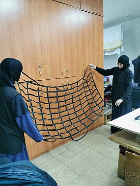 Насельницы Иверской обители подключились к этому важному и необходимому делу. Теперь в швейной монастырской мастерской кипит работа. Сестры помогают нашим бойцам, находящимся на передовой, не только беспрестанной молитвой, но и работой. На изготовление одних носилок требуется около 6 часов. Носилки шьются из парашютных строп, изготовление которых тоже осуществляется в монастыре. Носилки получаются из данного материала облегченными, весят около 400 граммов. В комплект входят стропы, носилки и специальная сумка. Около 30 комплектов изготовлено в монастырской мастерской. Одни носилки – это спасенные несколько жизней. Прихожане обители тоже подключились к этому деланию. Пенсионерки дома вяжут для солдат носки и теплые вещи. Сестры молятся поименно за исполняющих воинский долг или погибших воинов. Имена можно присылать на электронный адрес ivermon1@yandex.ru.