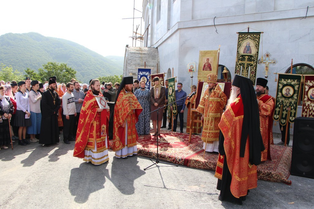 По окончании богослужения прихожане во главе с епископом Феодором прошли крестным ходом вокруг собора.