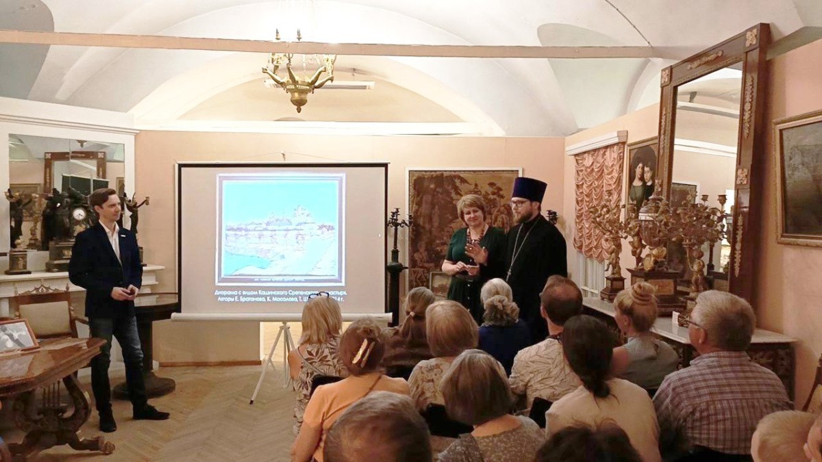 Вера Алексеевна Никонова, краевед, жительница Кашина, показала объемную картину из бумаги, изготовленную в 1870-х годах, приобретенную позднее семьей Вышеславцевых.. Клирик Вознесенского собора священник Александр Рычков, отметил, что подобные встречи помогают глубже узнать историю многочисленных кашинских храмов и монастырей.