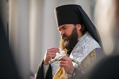 Архипастырям сослужили наместник Казанско-Богородицкого монастыря игумен Марк (Виленский), секретарь Казанского епархиального управления протоиерей Владимир Самойленко, настоятель Введенского Кизического монастыря игумен Пимен (Ивентьев), благочинный Высокогорского округа Казанской епархии протоиерей Алексий Краевский, братия обители в священном сане.