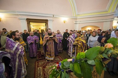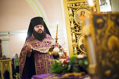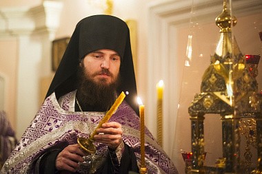 На всенощном бдении был совершен чин выноса Креста на середину храма для поклонения верующим, который зримо и духовно сближает современных христиан с тем днем, когда Крест Господень после трех столетий забвения был обнаружен равноапостольной царицей Еленой и явлен народу.