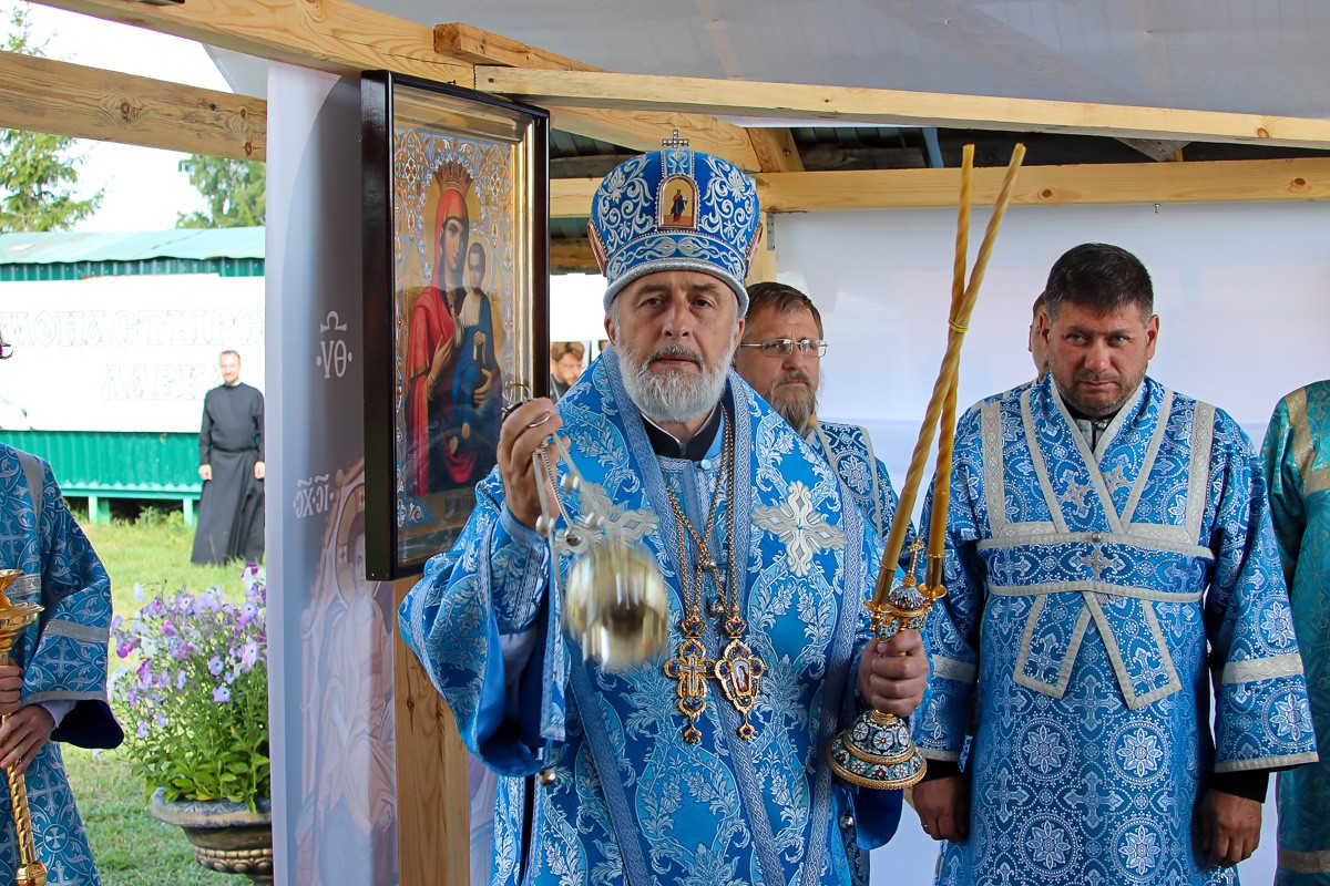 «По слову святителя Иоанна Златоуста, Божия Матерь является первой преемницей и предстоятельницей пред Богом. Мы все к Ней притекаем, просим Ее заступничества, молитв, благословения, – сказал епископ Владимир. – Будем же чаще обращаться к нашей Заступнице усердной всего рода христианского, будем просить, чтобы Ее молитвами Господь помог нам восстановить утраченные святыни, в частности Свято-Казанский Чимеевский храм, сгоревший в июле прошлого года. Я осмотрел начатое строительство и порадовался, что уже завершен нулевой цикл. Мы верим, что вашими молитвами, владыка, попечением игумена и братии обители, при помощи благотворителей этот храм будет построен. А ту великую скорбь, что случилась чуть больше года назад, Господь претворит в радость. У Бога ничего не происходит случайно. Будем верить, что эта обитель воссияет, число братии увеличится и многие паломники, как в былые времена, будут следовать сюда, чтобы получить духовное утешение».