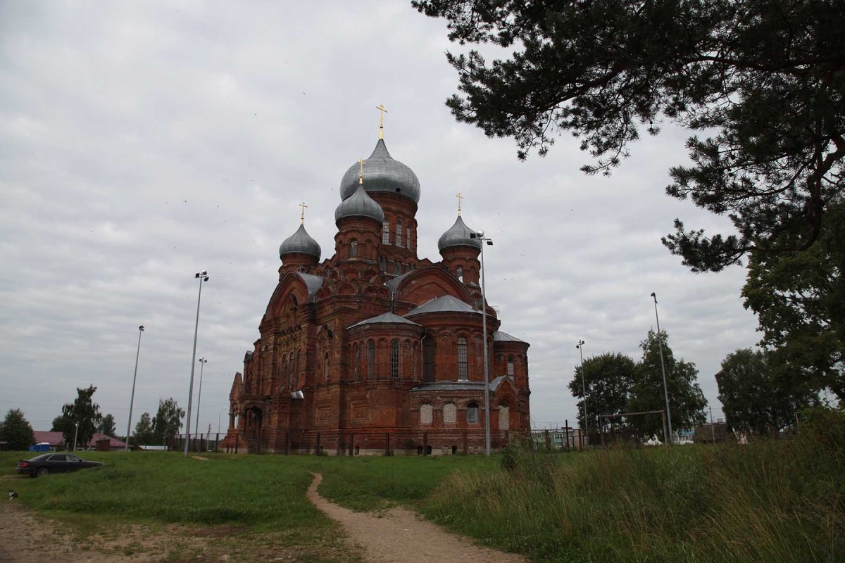 В 1897-м, в ныне не существующей деревне Нохрино, монастырь устроил собственный кирпичный завод и было начато строительство святых врат с двухъярусной колокольней, которое было завершено в 1900 году. Эти постройки не сохранились. В 1901 году приступили к строительству большого храма. Святейший Синод одобрил проект петербургского архитектора В.А. Косякова. После смерти первой настоятельницы монастыря монахини Михаилы из-за нехватки средств в 1909 году строительство было приостановлено почти на семь лет, возобновлено лишь летом 1915 года. 16 сентября 1918-го состоялось освящение храма Святейшим Патриархом Московским и всея Руси Тихоном.