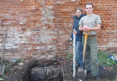 В ходе работ было заложено 6 небольших раскопов размером, примерно, 1х1м – археологи называют их шурфами. Шурфы были заложены на разрушенных в советский период участках кирпичной ограды монастыря. Один из шурфов был разбит на месте предполагаемого расположения угловой монастырской башни.