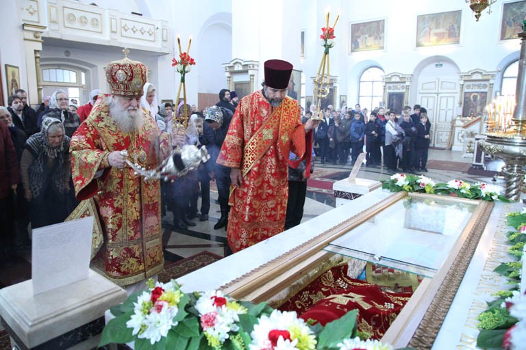 Божественную литургию в Казанском женском монастыре г. Ярославля, где пребывают мощи святителя, совершил митрополит Ярославский и Ростовский Пантелеимон в сослужении епископа Рыбинского и Угличского Вениамина и духовенства Ярославской митрополии.