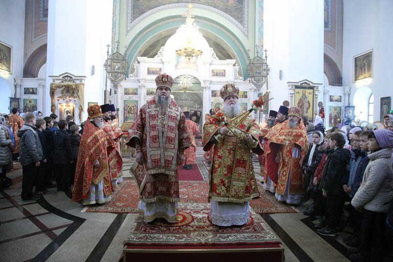 За богослужением молились настоятельница Казанского монастыря игумения Екатерина (Гаева) с сестрами и учащиеся епархиальной классической гимназии имени святителя Игнатия (Брянчанинова).