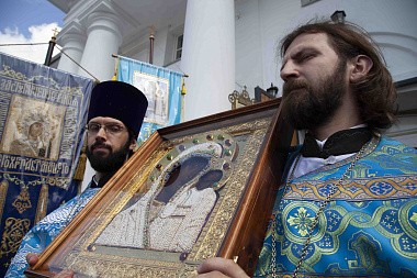 По окончании Литургии верующие прошли крестным ходом с Казанским образом вокруг той территории, которую до революции занимала обитель.